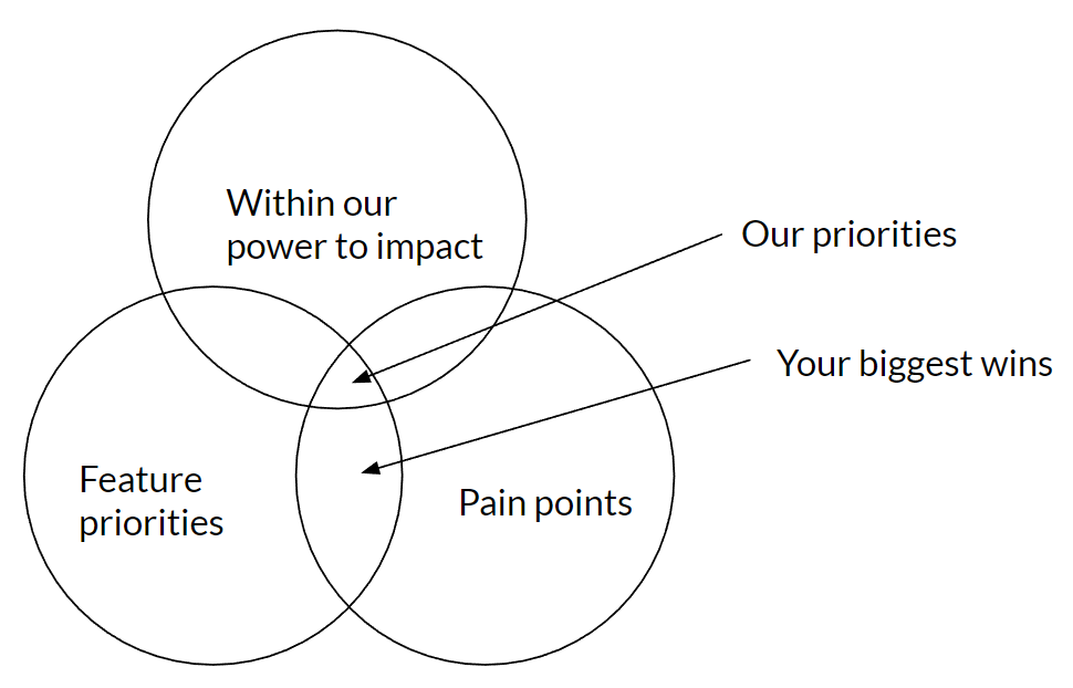 From the survey we compared your pain points against the features you'd care most to see, and overlapped that with our ability to have an impact.