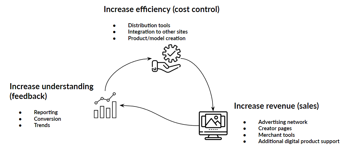 Looking at the outcome of that list showed us that creators' businesses work similarly to ours when it comes to high-level priorities, and go through a continuous cycle of improvement: